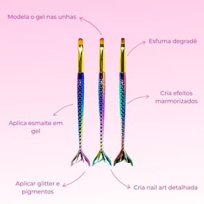 Kit 3 Pincéis Sereia Língua De Gato Unha Gel Fibra Nail Art