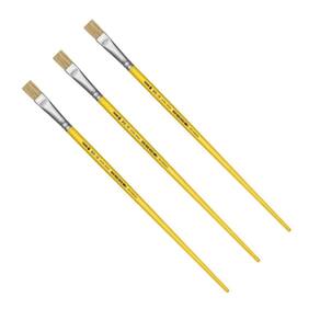 Pincel reto com cabo longo, ideal para alcance em áreas de difícil acesso. Possui cerdas naturais de alta qualidade, macias e resistentes, que garante uma aplicação uniforme e precisa de tintas, vernizes ou outros acabamentos. É indicada para cobertura com volume e pintura em superfícies como: tela, painel, mural, tecido, parede, gesso, cerâmica e madeira. Cabo ergonômico, que oferece conforto e controle durante o uso. Perfeito para trabalhos em superfícies amplas ou detalhadas, proporcionando um acabamento . Informações técnicas: Dimensões: - Largura: 1,2cm 12mm - Comprimento total: 25,5cm 255mm Cor: Amarelo Materiais: - Cabo: Madeira - Cerdas: Natural Superfícies aptas: Tela, painel, mural, tecido, parede, gesso, cerâmica e madeira Referência: 815-12 Tipo de tintas aptas: Esmalte, óleo, vernizes e stains Cerdas macias KIT COM 3 UNIDADES Marca: Não Informado Ean: 7891100586531