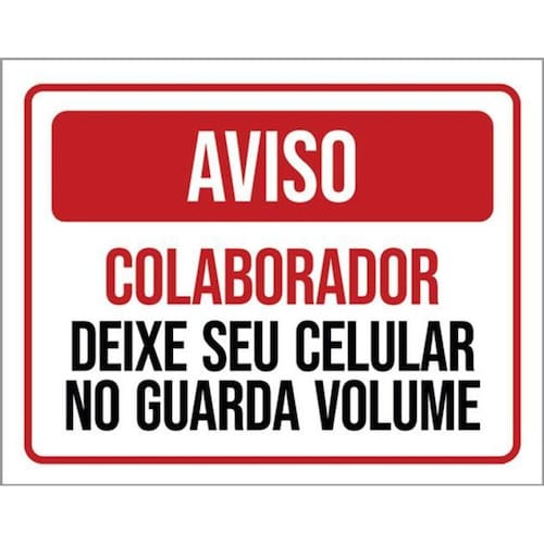 Kit 3 Placa Colaborador Deixe Celular Guarda Volume 36x46 Placas de sinalizaço fabricadas com poliestireno de alto impacto PSAI de 2mm e impressão ultravioleta.