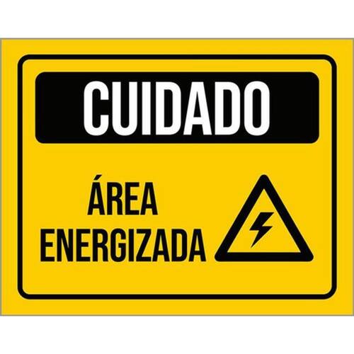 Kit 3 Placa Cuidado Eletricidade Área Energizada 36x46 Placas de sinalizaço fabricadas com poliestireno de alto impacto PSAI de 2mm e impressão ultravioleta.
