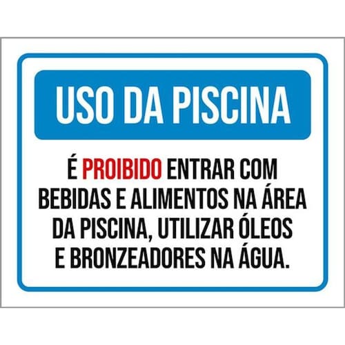 Kit 3 Placa Da Piscina Proibido Entrar Com Bebidas 36x46 Placas de sinalizaço fabricadas com poliestireno de alto impacto PSAI de 2mm e impressão ultravioleta.