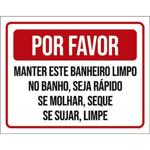 Kit 3 Placa Favor Manter Banheiro Limpo Banho Rápido 36x46 Placas de sinalizaço fabricadas com poliestireno de alto impacto PSAI de 2mm e impressão ultravioleta.