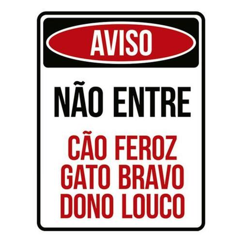 Kit 3 Placa Não Entre Cão Feroz Gato Bravo Dono Louco 36x46 Placas de sinalizaço fabricadas com poliestireno de alto impacto PSAI de 2mm e impressão ultravioleta.