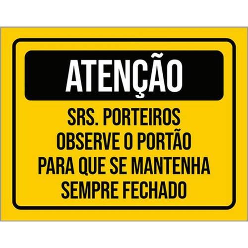 Kit 3 Placa Porteiros Observe Portão Sempre Fechado 36x46 Placas de sinalizaço fabricadas com poliestireno de alto impacto PSAI de 2mm e impressão ultravioleta.