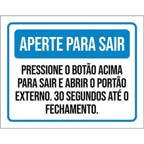 Kit 3 Placas Aperte Sair Pressione Botão 36x46 Placas de sinalizaço fabricadas com poliestireno de alto impacto PSAI de 2mm e impressão ultravioleta.