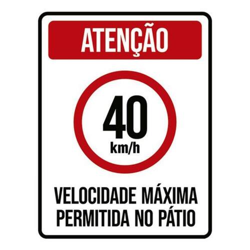 Kit 3 Placas Atenção 40km Velocidade Máxima Pátio Placas de sinalizaço fabricadas com poliestireno de alto impacto PSAI de 2mm e impressão ultravioleta.