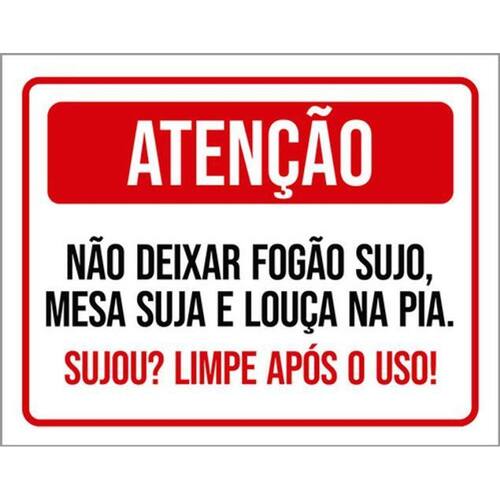 Kit 3 Placas Atenção Deixar Fogão Sujo Mesa Suja Louça Pia Placas de sinalizaço fabricadas com poliestireno de alto impacto PSAI de 2mm e impressão ultravioleta.