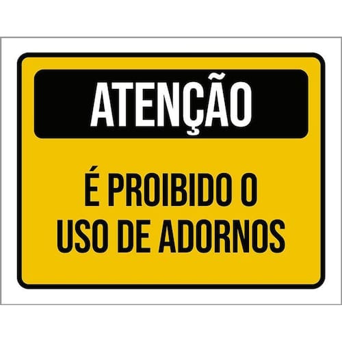 Kit 3 Placas Atenção É Proibido Uso De Adornos Placas de sinalizaço fabricadas com poliestireno de alto impacto PSAI de 2mm e impressão ultravioleta.