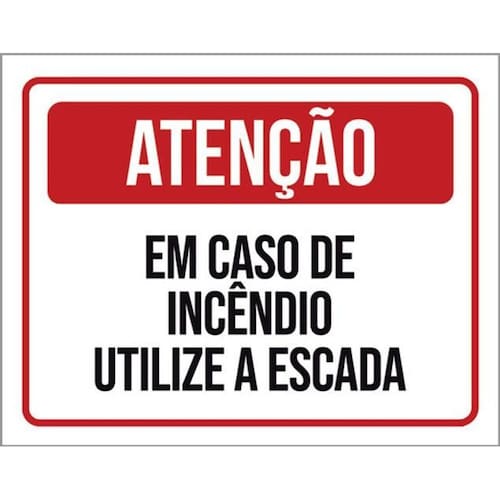 Kit 3 Placas Atenção Em Caso De Incêndio Utilize A Escada Placas de sinalizaço fabricadas com poliestireno de alto impacto PSAI de 2mm e impressão ultravioleta.