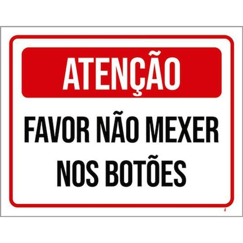 Kit 3 Placas Atenção Favor Não Mexer Nos Botões 36x46 Placas de sinalizaço fabricadas com poliestireno de alto impacto PSAI de 2mm e impressão ultravioleta.