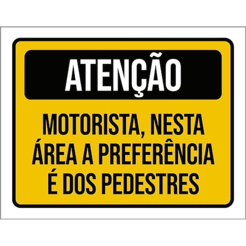 Kit 3 Placas Atenção Motorista Área Preferência Pedestres Placas de sinalizaço fabricadas com poliestireno de alto impacto PSAI de 2mm e impressão ultravioleta.