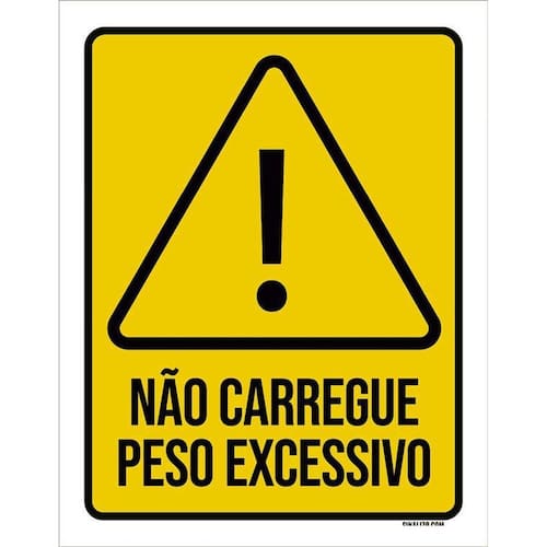 Kit 3 Placas Atenção Não Carregue Peso Excessivo Placas de sinalizaço fabricadas com poliestireno de alto impacto PSAI de 2mm e impressão ultravioleta.