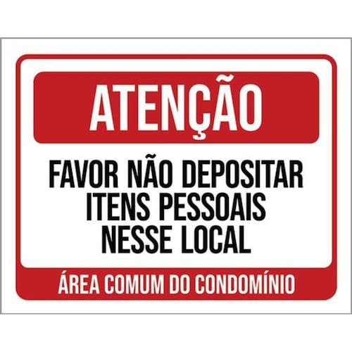 Kit 3 Placas Atenção Não Depositar Itens Pessoais Local Placas de sinalizaço fabricadas com poliestireno de alto impacto PSAI de 2mm e impressão ultravioleta.