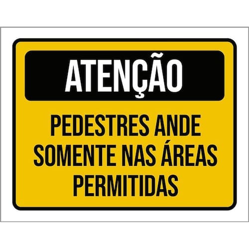 Kit 3 Placas Atenção Pedestres Ande Áreas Permitidas Placas de sinalizaço fabricadas com poliestireno de alto impacto PSAI de 2mm e impressão ultravioleta.