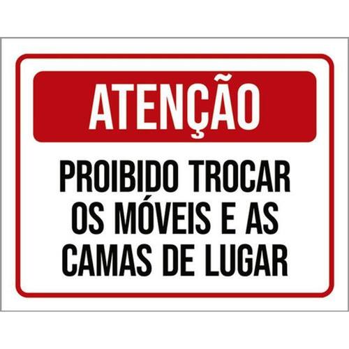 Kit 3 Placas Atenção Proibido Trocar Móveis Camas Lugar Placas de sinalizaço fabricadas com poliestireno de alto impacto PSAI de 2mm e impressão ultravioleta.