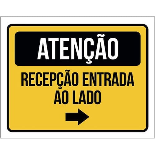 Kit 3 Placas Atenção Recepção Entrada Ao Lado 36x46 Placas de sinalizaço fabricadas com poliestireno de alto impacto PSAI de 2mm e impressão ultravioleta.