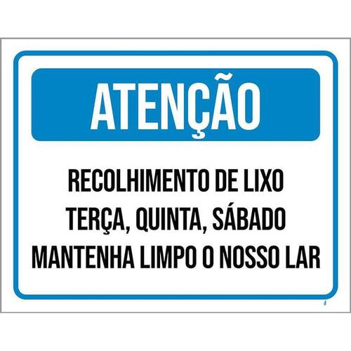Kit 3 Placas Atenção Recolhimento De Lixo Mantenha Limpo Placas de sinalizaço fabricadas com poliestireno de alto impacto PSAI de 2mm e impressão ultravioleta.