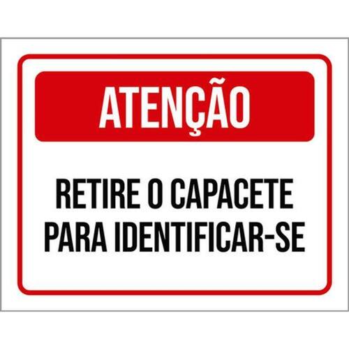 Kit 3 Placas Atenção Retire Capacete Identificar-se Placas de sinalizaço fabricadas com poliestireno de alto impacto PSAI de 2mm e impressão ultravioleta.