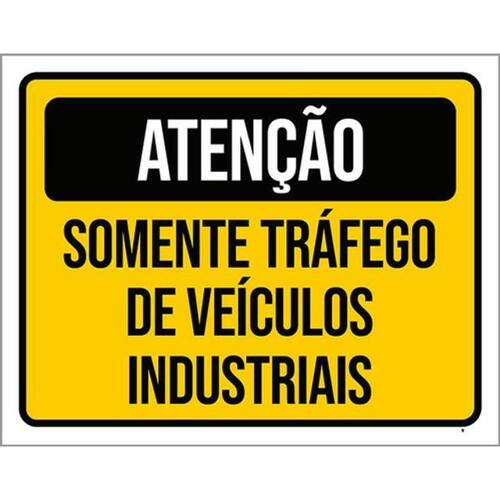 Kit 3 Placas Atenção Somente Tráfego Veículos Industriais Placas de sinalizaço fabricadas com poliestireno de alto impacto PSAI de 2mm e impressão ultravioleta.