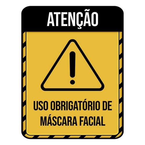 Kit 3 Placas Atenção Uso Obrigatório Máscara Facial Placas de sinalizaço fabricadas com poliestireno de alto impacto PSAI de 2mm e impressão ultravioleta.