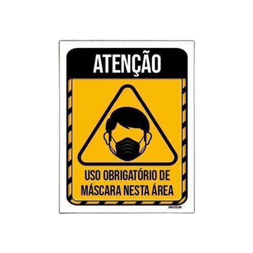 Kit 3 Placas Atenção Uso Obrigatório Mascara Nesta Área placas decorativas e de sinalização fabricadas com poliestireno de alto impacto PSAI de 2mm e impressão ultravioleta de alta qualidade.