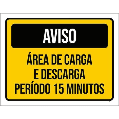 Kit 3 Placas Aviso Área Carga Descarga Perídiodo 15 Minutos Placas de sinalizaço fabricadas com poliestireno de alto impacto PSAI de 2mm e impressão ultravioleta.