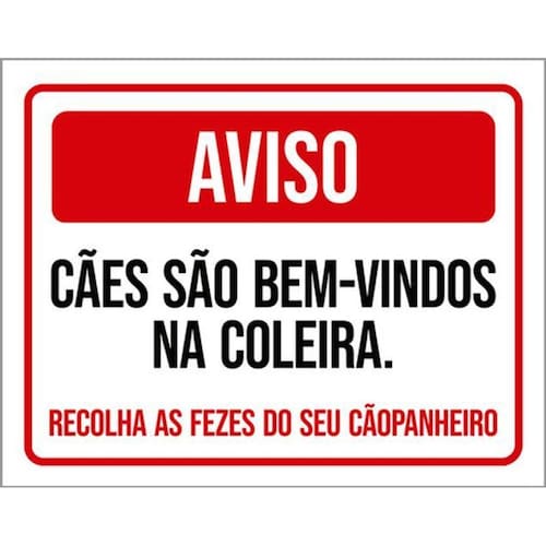 Kit 3 Placas Aviso Cães Bem Vindos Coleira Recolha Fezes Placas de sinalizaço fabricadas com poliestireno de alto impacto PSAI de 2mm e impressão ultravioleta.