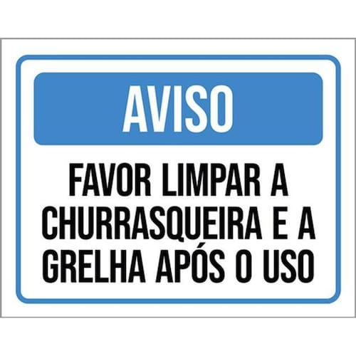 Kit 3 Placas Aviso Favor Limpar Churrasqueira Grelha Uso Placas de sinalizaço fabricadas com poliestireno de alto impacto PSAI de 2mm e impressão ultravioleta.