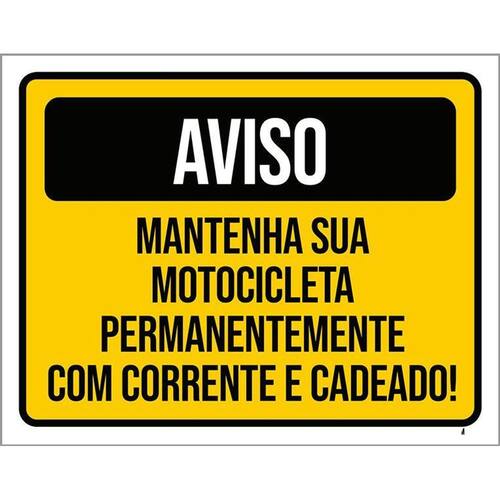 Kit 3 Placas Aviso Mantenha Motocicleta Corrente Cadeado Placas de sinalizaço fabricadas com poliestireno de alto impacto PSAI de 2mm e impressão ultravioleta.