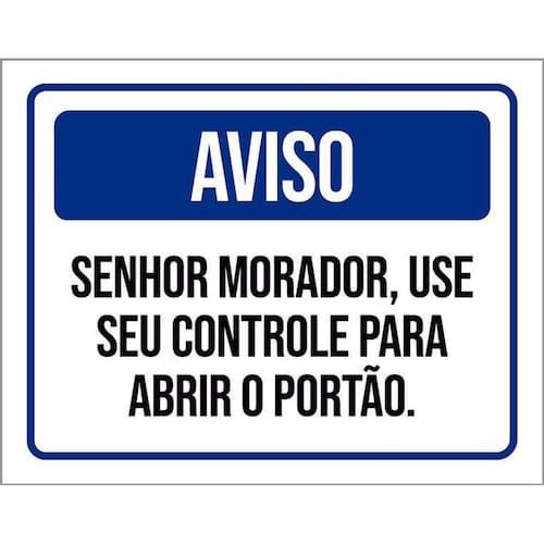 Kit 3 Placas Aviso Morador Use Controle Abrir Portão Placas de sinalizaço fabricadas com poliestireno de alto impacto PSAI de 2mm e impressão ultravioleta.