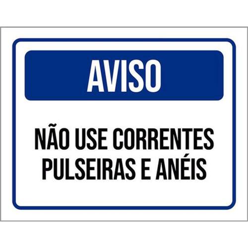 Kit 3 Placas Aviso Não Use Correntes Pulseiras Anéis 36x46 Placas de sinalizaço fabricadas com poliestireno de alto impacto PSAI de 2mm e impressão ultravioleta.