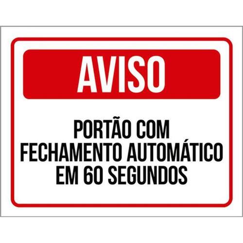 Kit 3 Placas Aviso Portão Automático Fechamento 80 Segundos Placas de sinalizaço fabricadas com poliestireno de alto impacto PSAI de 2mm e impressão ultravioleta.