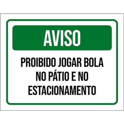 Kit 3 Placas Aviso Proibido Jogar Bola Pátio Estacionamento Placas de sinalizaço fabricadas com poliestireno de alto impacto PSAI de 2mm e impressão ultravioleta.