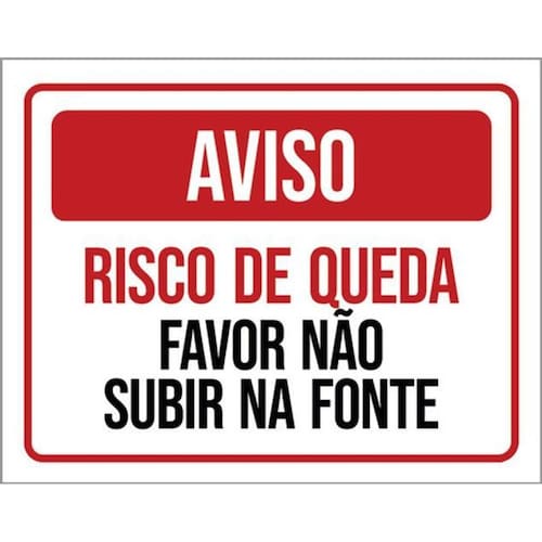 Kit 3 Placas Aviso Risco Quedra Não Subir Na Fonte 36x46 Placas de sinalizaço fabricadas com poliestireno de alto impacto PSAI de 2mm e impressão ultravioleta.