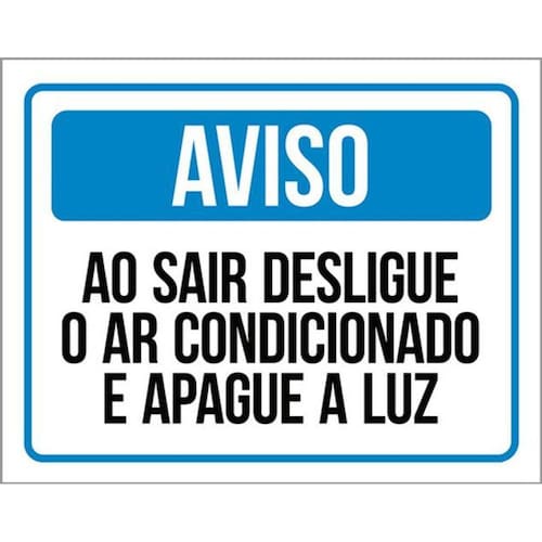 Kit 3 Placas Aviso Sair Desligue Ar Condicionado Apague Luz Placas de sinalizaço fabricadas com poliestireno de alto impacto PSAI de 2mm e impressão ultravioleta.