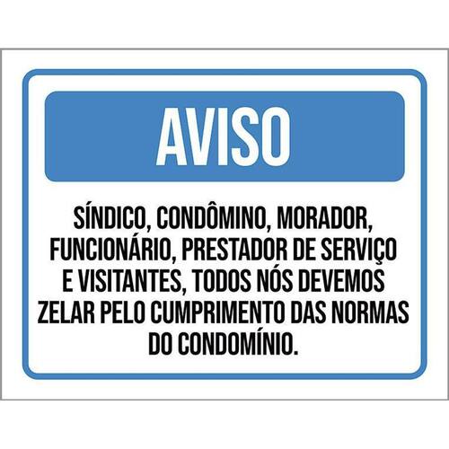 Kit 3 Placas Aviso Zela Cumprimento Normas Condomínio Placas de sinalizaço fabricadas com poliestireno de alto impacto PSAI de 2mm e impressão ultravioleta.