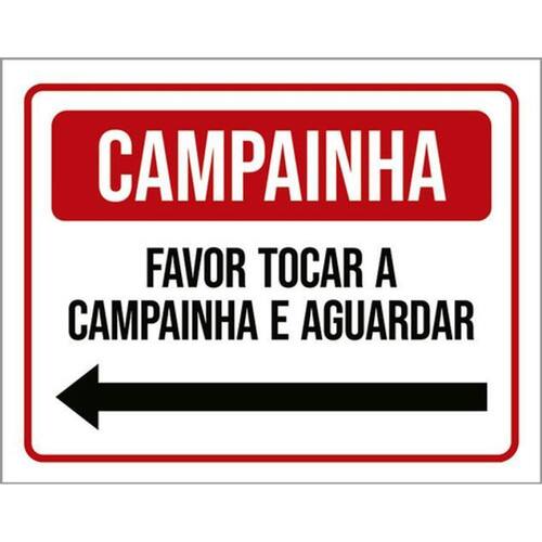 Kit 3 Placas Campainha Favor Tocar Aguardar Seta Esquerda Placas de sinalizaço fabricadas com poliestireno de alto impacto PSAI de 2mm e impressão ultravioleta.
