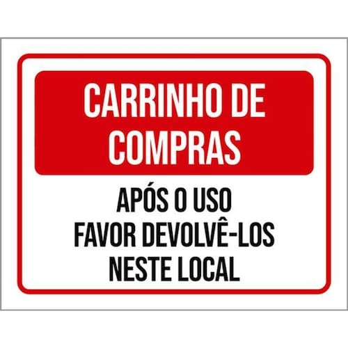 Kit 3 Placas Carrinhos Compras Após Uso Devolvê-los 36x46 Placas de sinalizaço fabricadas com poliestireno de alto impacto PSAI de 2mm e impressão ultravioleta.