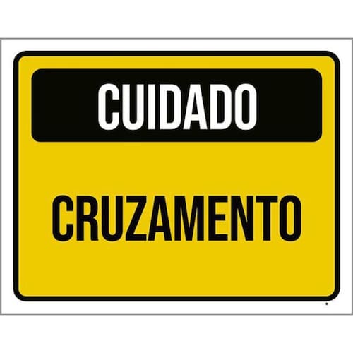 Kit 3 Placas Cuidado Cruzamento Amarelo 36x46 Placas de sinalizaço fabricadas com poliestireno de alto impacto PSAI de 2mm e impressão ultravioleta.