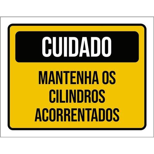 Kit 3 Placas Cuidado Mantenha Cilindros Acorrentados Placas de sinalizaço fabricadas com poliestireno de alto impacto PSAI de 2mm e impressão ultravioleta.