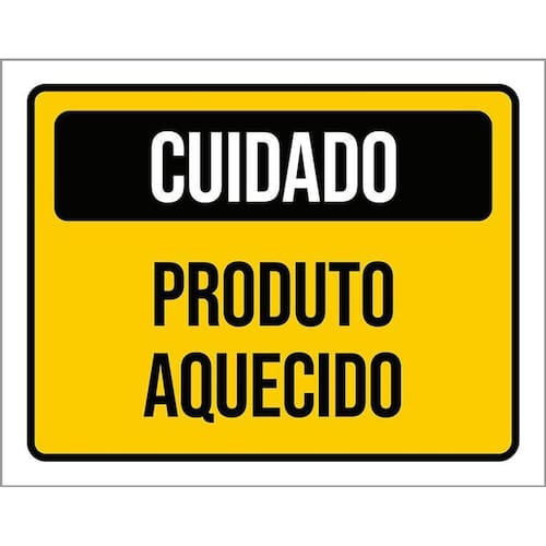 Kit 3 Placas Cuidado Produto Aquecido Placas de sinalizaço fabricadas com poliestireno de alto impacto PSAI de 2mm e impressão ultravioleta.