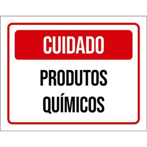 Kit 3 Placas Cuidado Produtos Químicos Placas de sinalizaço fabricadas com poliestireno de alto impacto PSAI de 2mm e impressão ultravioleta.