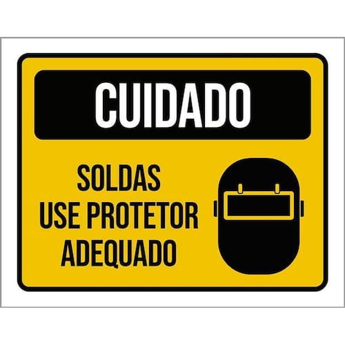 Kit 3 Placas Cuidado Soldas Use Protetor Adequado Placas de sinalizaço fabricadas com poliestireno de alto impacto PSAI de 2mm e impressão ultravioleta.