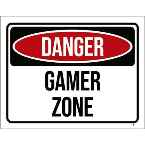Kit 3 Placas Danger Gamer Zone 36x46 Placas de sinalizaço fabricadas com poliestireno de alto impacto PSAI de 2mm e impressão ultravioleta.