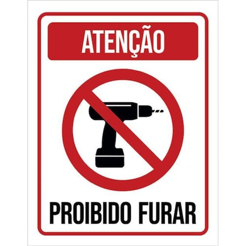 Kit 3 Placas De Atenção Proibido Furar 36x46 Placas de sinalizaço fabricadas com poliestireno de alto impacto PSAI de 2mm e impressão ultravioleta.