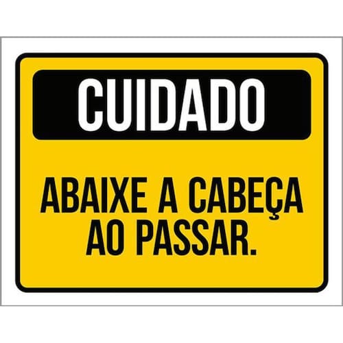 Kit 3 Placas De Cuidado Abaixe Cabeça Ao Passar 36x46 Placas de sinalizaço fabricadas com poliestireno de alto impacto PSAI de 2mm e impressão ultravioleta.