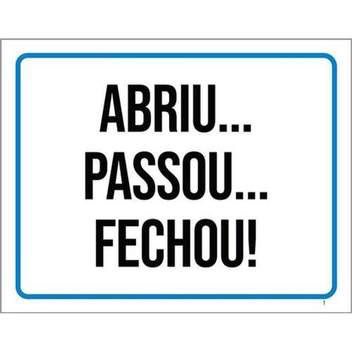 Kit 3 Placas De Sinalização - Abriu Passou Fechou Placas de sinalizaço fabricadas com poliestireno de alto impacto PSAI de 2mm e impressão ultravioleta.
