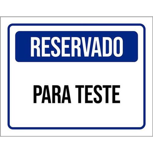Kit 3 Placas De Sinalização - Reservado Para Teste Placas de sinalizaço fabricadas com poliestireno de alto impacto PSAI de 2mm e impressão ultravioleta.