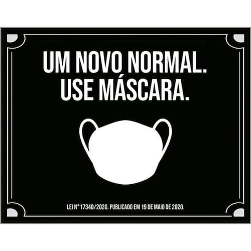 Kit 3 Placas De Sinalização -um Novo Normal Use Máscara Placas de sinalizaço fabricadas com poliestireno de alto impacto PSAI de 2mm e impressão ultravioleta.