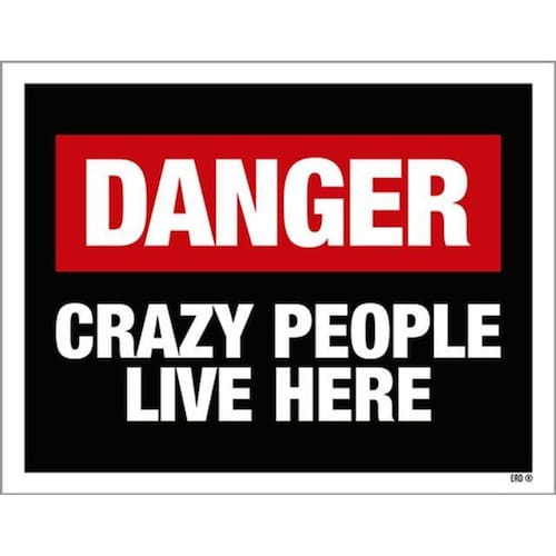 Kit 3 Placas Decorativa Danger Crazy People Live Here 36x46 Placas de sinalizaço fabricadas com poliestireno de alto impacto PSAI de 2mm e impressão ultravioleta.